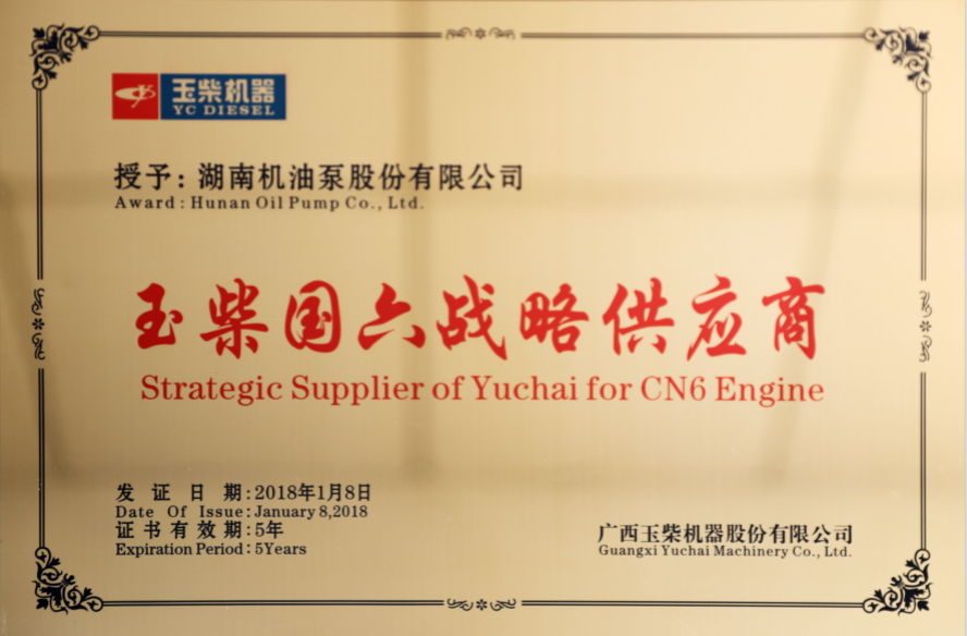 湖南機油泵股份有限公司作為玉柴國六發(fā)動機的戰(zhàn)略供應商之一和2017年度優(yōu)秀供應商,同時也作為中國內燃機工業(yè)協(xié)會確認的“中國內燃機工業(yè)排頭兵企業(yè)”。湘油泵隨著玉柴機器的發(fā)展做大做強,在技術上不斷創(chuàng)新,每年設計開發(fā)新產(chǎn)品達100多種,申請國家專利、發(fā)明專利授權200多項,建立了國內一流的試驗中心、國家認定企業(yè)技術中心,二十多項科研成果、新產(chǎn)品獲得國家、省、市科技進步獎。