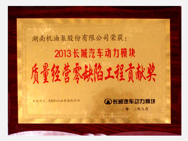 2012年公司技術(shù)中心獲得國家認(rèn)定企業(yè)技術(shù)中心資格 ,湖南機(jī)油泵被評(píng)為"用戶滿意的內(nèi)燃機(jī)配附件品牌", 公司還被評(píng)為湖南省配套服務(wù)十佳企業(yè),質(zhì)量信用AAA級(jí)企業(yè),納稅信用A級(jí)單位,衡陽市成長性企業(yè),同時(shí)還榮獲了衡陽市慈善獎(jiǎng),湖南省職工科技創(chuàng)新工作先進(jìn)單位,公司黨委榮獲省委"創(chuàng)先爭優(yōu)先進(jìn)基層黨組織"稱號(hào)。