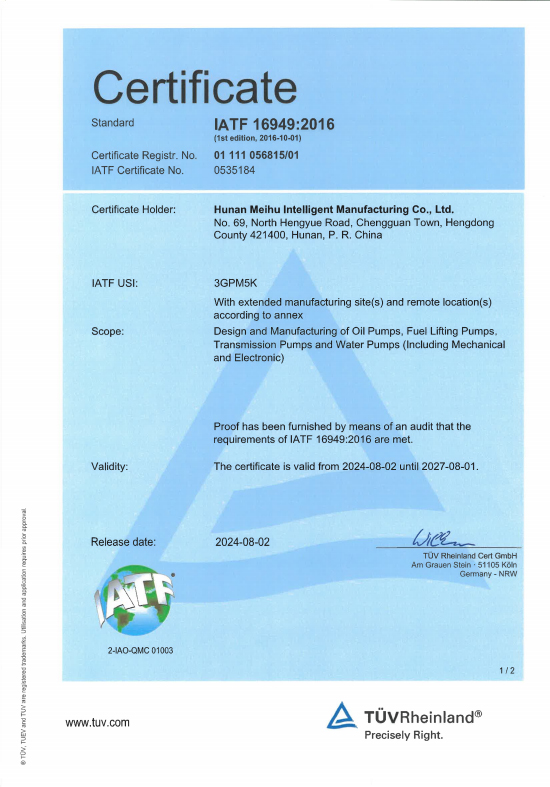 IATF16949中、英文認證證書